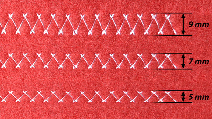 Na priloženom obrázku sami môžete vidiet, aký je zásadný rozdiel medzi šírkami stehov 5, 7 a 9mm.